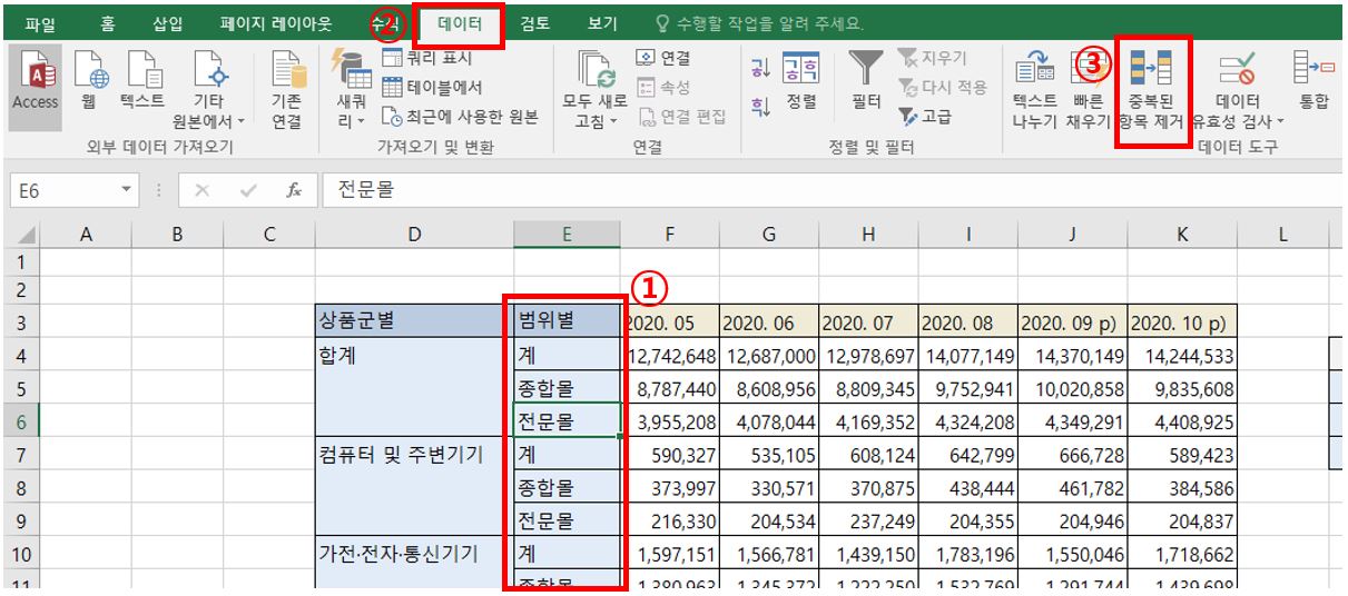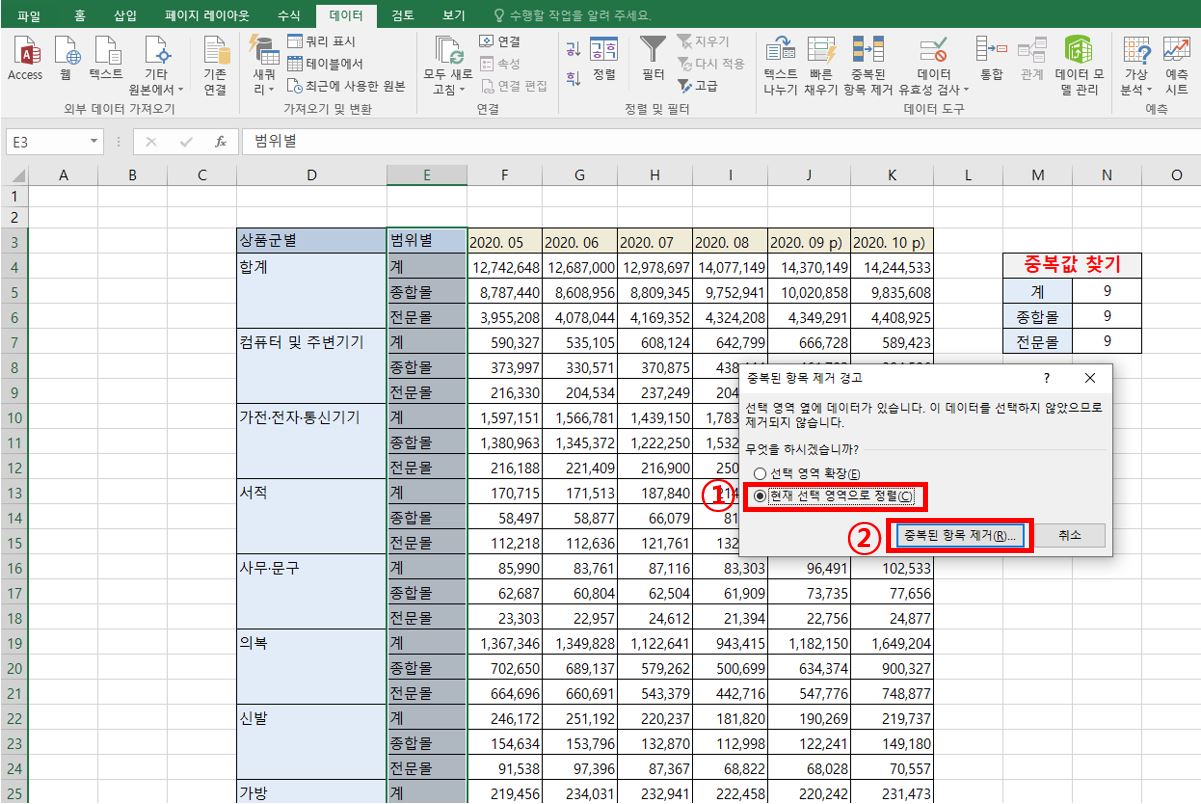 아래 보이는 것처럼 [중복된 항목 제거] 아이콘이