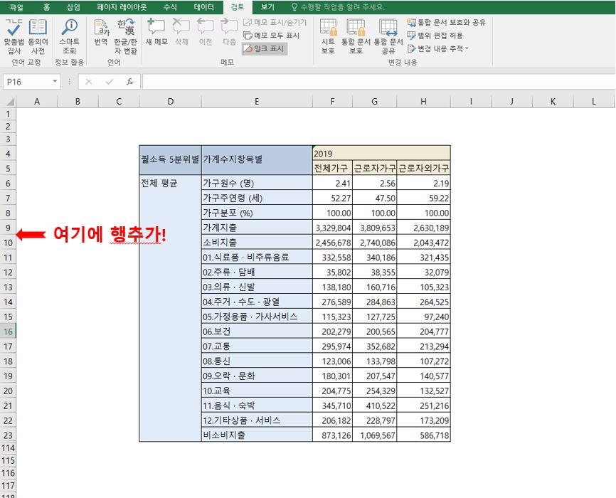 행과 열을 추가했으니