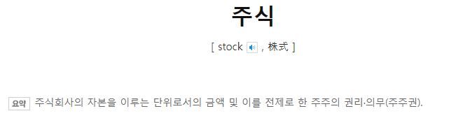 사전에서 정의하는 주식 의미를 봅시다.