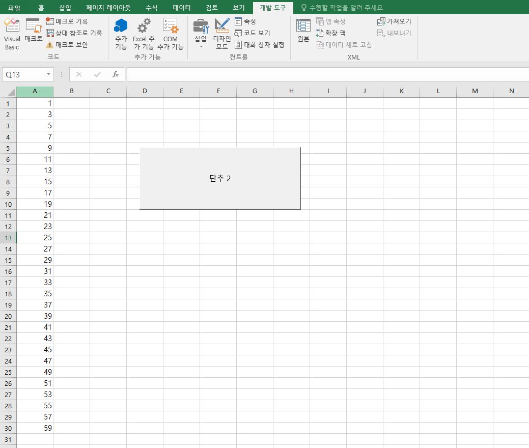 실제로 시트에 홀수가 입력될 수 있도록
