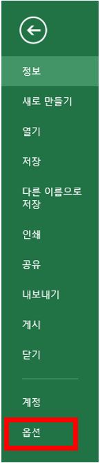 아래와 같은 EXCEL 옵션 창이 뜨고