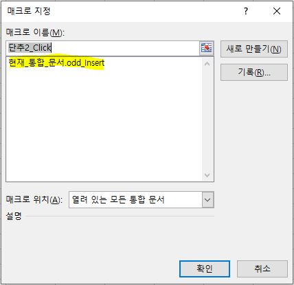 매크로 지정 창이 열리고