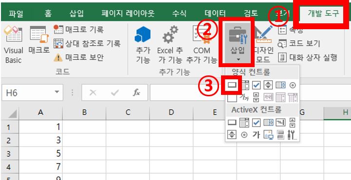 엑셀 시트에 버튼을 만들고