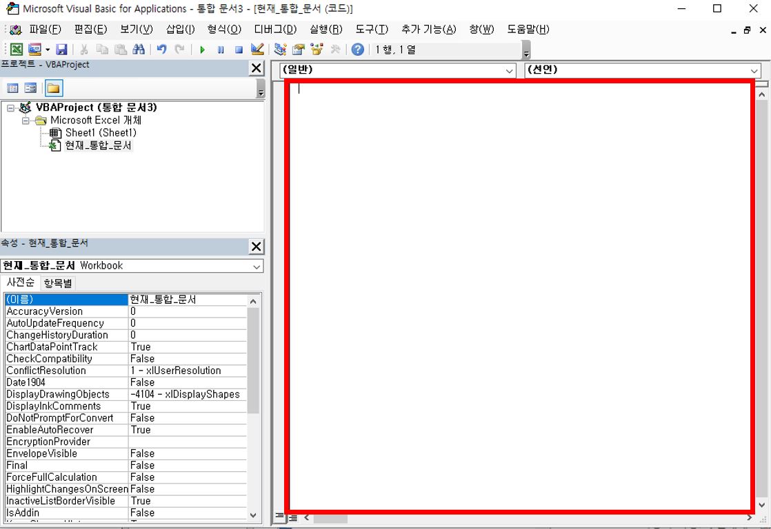 이제 VBA 프로그래밍이 진행됩니다.