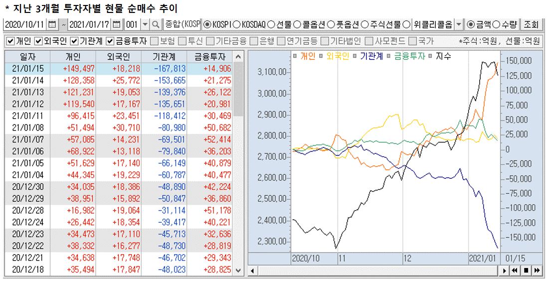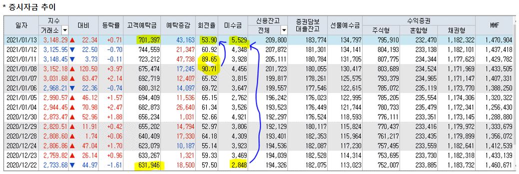 1월 13까지 국내 증시 자금 추이를 봐서