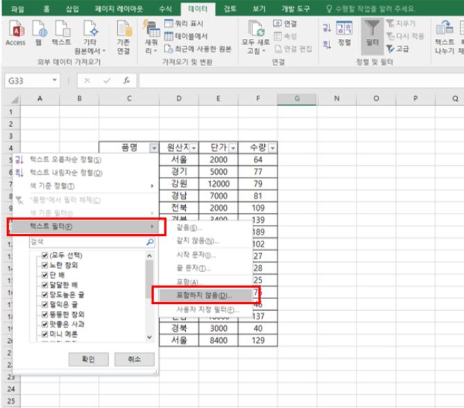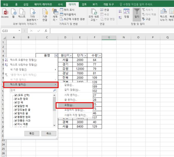 아래 이미지에서 메뉴의 [텍스트 필터]를 클릭하면